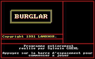 J’ai développé Burglar pendant l’été 1991, j’avais 13 ans, je passais en 4eme au collège. Ce n’était pas mon premier jeu “complet” (j’avais fait un clone de Boulder Dash appelé Dingbot en classe de 6eme), mais c’était le seul qui, malgré ses pauvres graphismes, avait un reel intérêt de jeu (au vu du scénario, même très simplet maintenant avec le recul…).