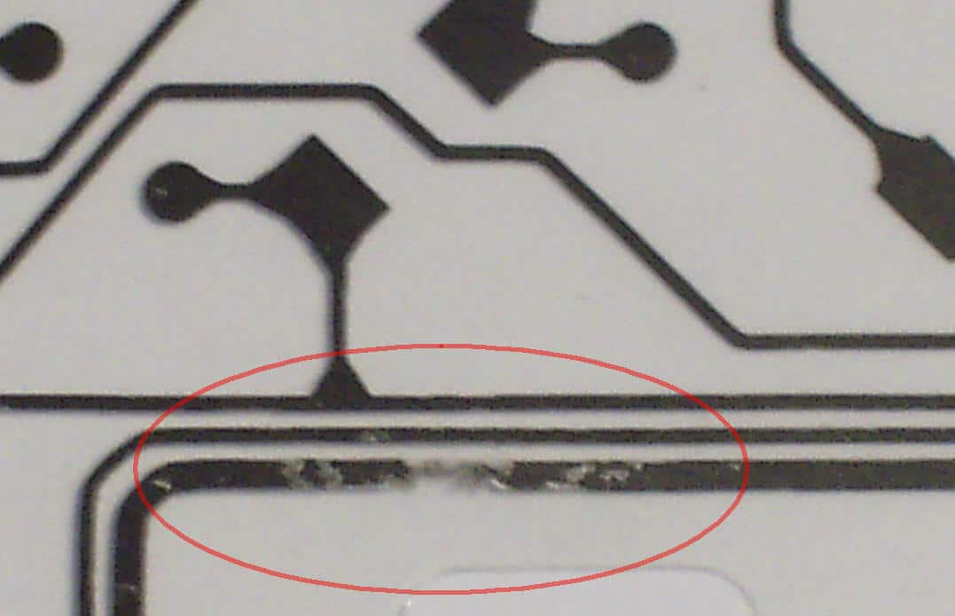 Vous allez voir un circuit imprimé sur une feuille plastique transparente… Notre problème ce trouve ici. Vous pouvez voir sur la photo ci-dessous une des parties détérioré de mon 664.