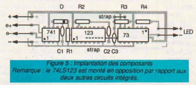 Le 74LS123 est monté en opposition par rapport aux deux autres circuits intégrés.