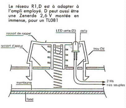 Un circuit imprime de 80×20 mm supporte les 3 circuits intègres- l’ampli op de type uA741 ou TL081 ou CA3140